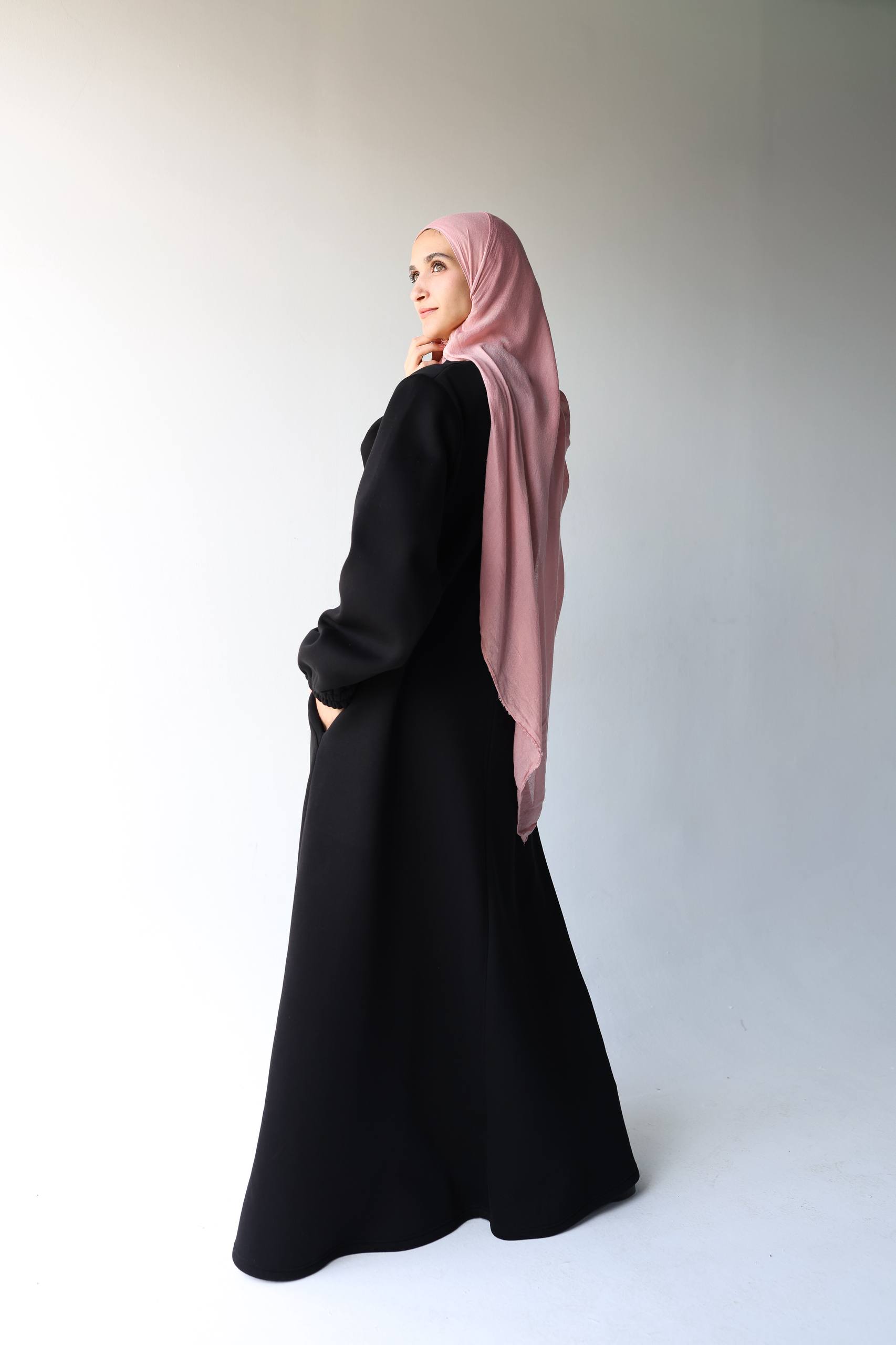 خامة الميلتون القطني الإسفنجي توفر نعومة وانسيابية في كل حركة، مع قصّة بسيطة تبرز جمال الإطلالة بدون أي تكلّف.