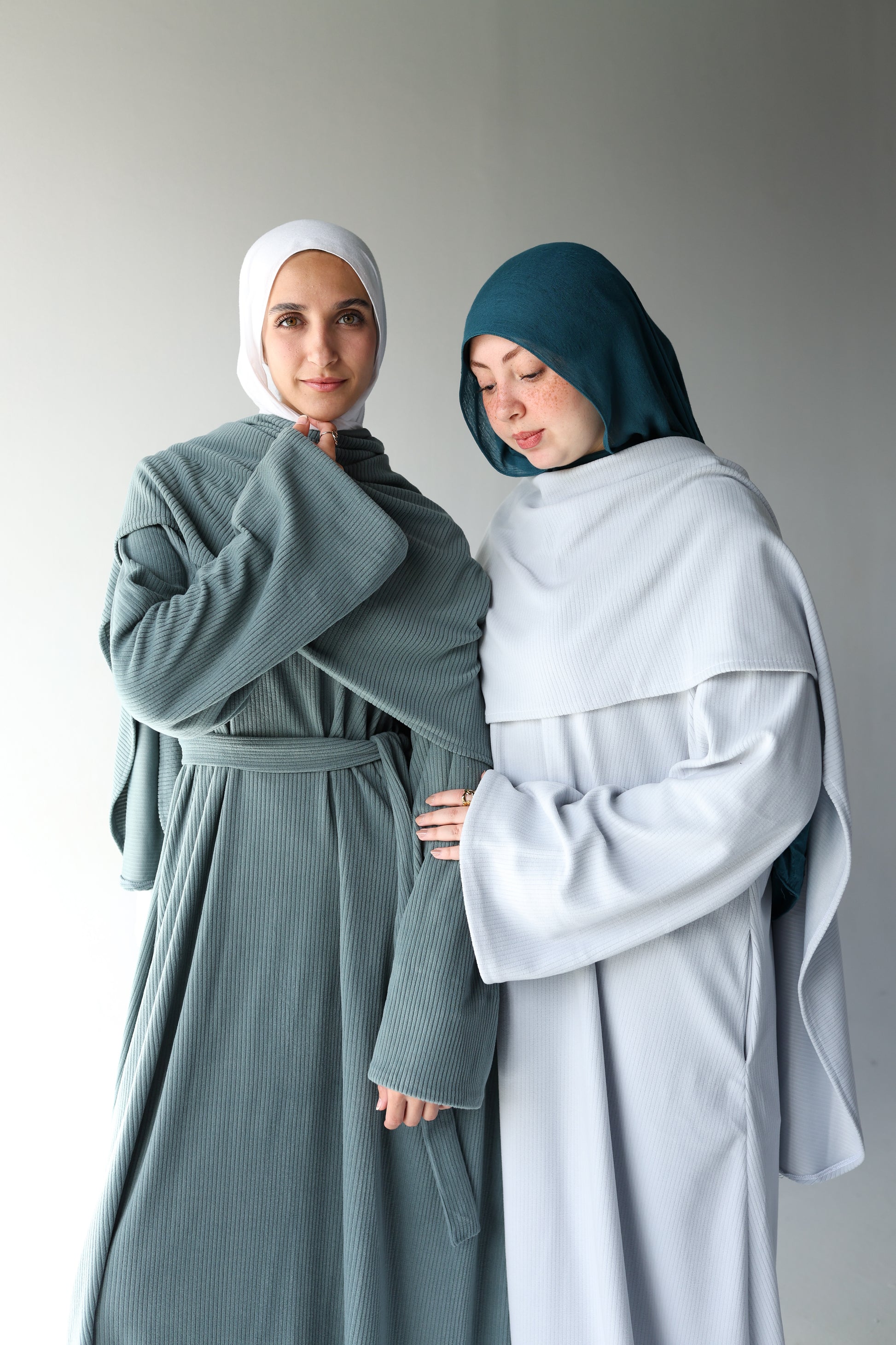 يأتي الفستان مع شال منفصل يضيف لمسة فخامة ويترك لك حرية التّنسيق بالطريقة التي تفضّلينها، سواء في إطلالة صباحية هادئة أو خروجة مسائية دافئة.